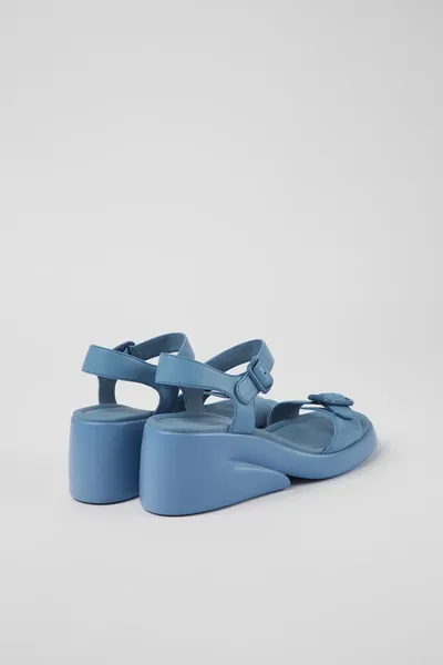 Blue leather women’s sandals with OrthoLite® Recycled™ non-removable footbeds and PU outsoles.