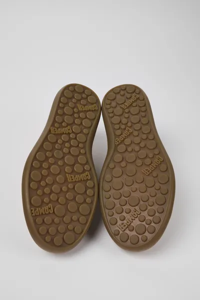 Brown nubuck men’s sneakers with OrthoLite® Recycled™ footbed and rubber outsoles.