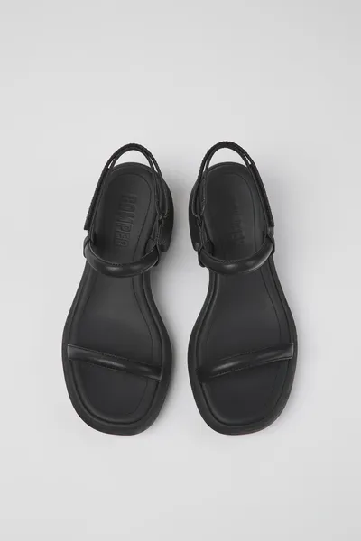 Black women’s sandals with water-saving leather, lightweight recycled OrthoLite® footbeds, and XL EXTRALIGHT® EVA outsoles.