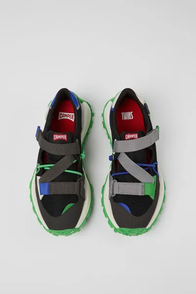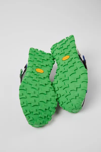 Multicolored textile/nubuck women’s sneakers with recycled polyester linings, recycled OrthoLite® footbeds, and Vibram outsoles.