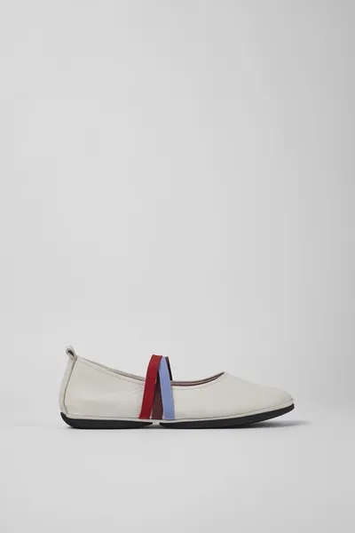White calfskin ballerinas for women with removable EVA footbeds and rubber outsoles (20% recycled).